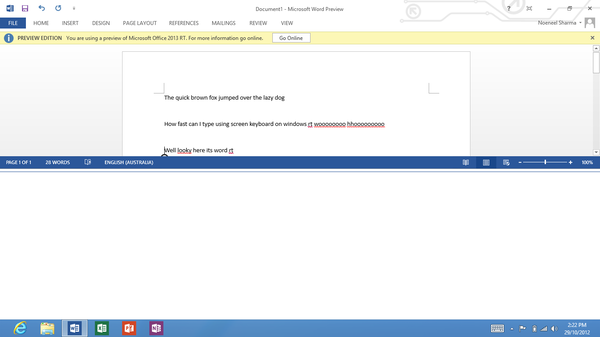 Office RT, whilst it worked perfectly fine for me, feels partially unfinished due to it’s tethering to the traditional desktop and mode of operation. When used in docked mode, it’s no different to working on a regular PC. Unfortunately, it just doesn’t feel intuitive enough to use when in a regular tablet mode. On a positive note though, I was able to load, modify and save spreadsheets and documents that I have stored on a FreeNAS network share.